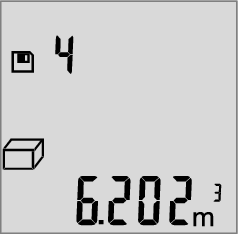 The number of the memory value is shown on the top left, the corresponding measuring function is shown underneath this, and the corresponding memory value is shown at the bottom. If there is no value available in the memory, "0.000" is shown at the bottom of the display and "0" at the top.