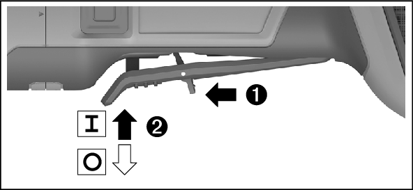 To start the power tool, push the unlocking lever (4) forwards and then push the on/off switch (3) up.
