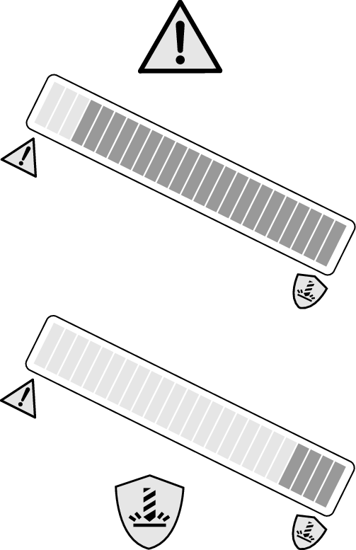 | WARNING! If the beam of the overload indicator lights up close to the left symbol, the workload is very high. If the beam of the overload indicator lights up close to the right symbol, the workload is optimal and there is no overload. |