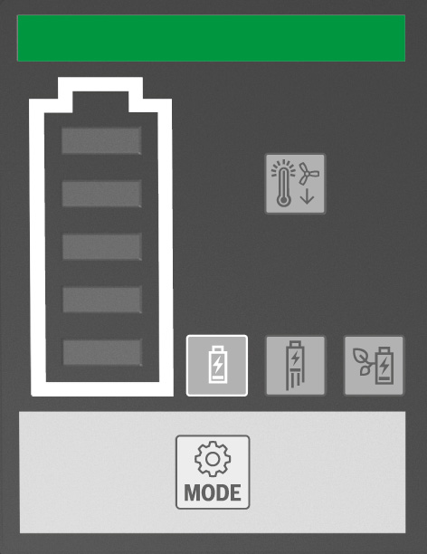 As soon as the permissible charging temperature range is reached, the charging process begins and the status indicator switches to green.